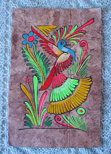 MEXICAN PARCHMENT ARTWORK FESTIVE BIRD WITH BLUE DAISY