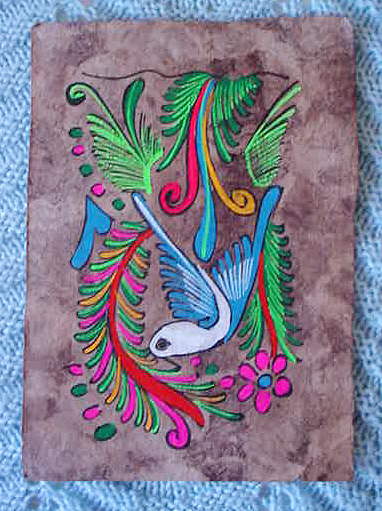 MEXICAN PARCHMENT ARTWORK BIRD WITH PINK DAISY