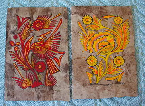 MEXICAN PARCHMENT ARTWORKRED & ORANGE BIRD PAIR