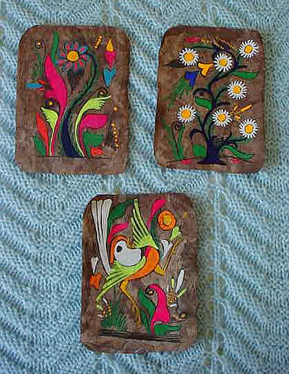 TRIO OF 5 X 7 MEXICAN PARCHMENT ARTWORK