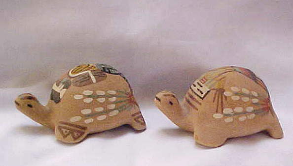 CLASSIC NATIVE AMERICAN artwork. This great pottery is probably Navajo or Zuni. 2 great Tortoises for one price! These are 6 & l/2" long by 3 & l/2 " wide and are 25 or more years old. Beautiful, rare and unique!
