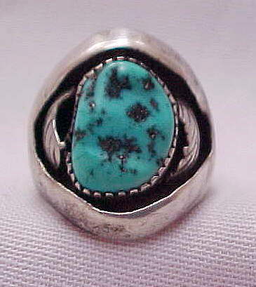 CLASSIC NATIVE AMERICAN hand made sterling silver and turquoise ring. This is probably Navajo or Zuni. This piece is signed/engraved with T THOMAS. SIZE 8. It is 25 or more years old. Beautiful, rare and unique!
