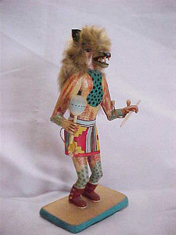 CLASSIC NATIVE AMERICAN hand made WOLF MAN KACHINA. This great Kachina is probably Navajo or Zuni. This piece is signed by "WOLF" "O. VINCENTE" " box 3523 Shiprock " and is 12" tall. It is 25 or more years old. Beautiful, rare and unique!