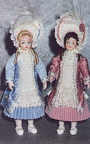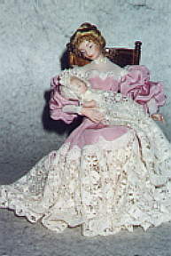 You have reached our porcelain doll page. Each of these beautiful dolls is created by our doll artist. Please scroll down to view and order. Dolls are 5 l/2 inches to 7 inches. "Continental US shipping, handling and tax charges are included FREE in all prices on this page." These exquisite dolls are so popular that our doll artist is booked for orders for about a year so please allow one year for your order to be filled.