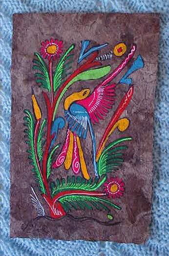 MEXICAN PARCHMENT ARTWORK BIRD WITH RED DAISY