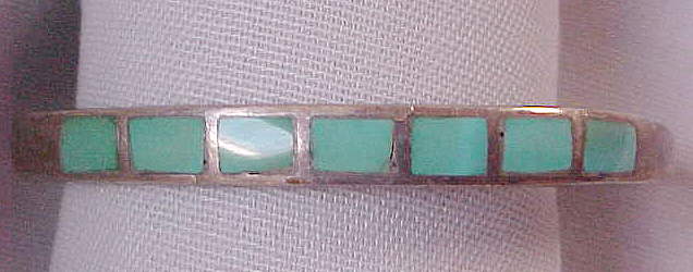 CLASSIC NATIVE AMERICAN hand crafted sterling silver and pale blueish/green 7 stone turquoise bracelet. This is probably Navajo or Zuni. Bracelet is 10 years old and was acquired in Sedona, AZ. Beautiful, rare and unique! FREE SHIPPING, HANDLING AND INSURANCE.