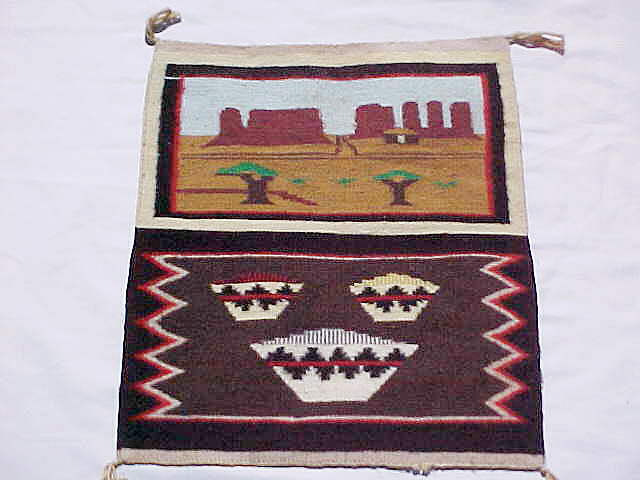 CLASSIC NATIVE AMERICAN hand made woven rug. This great hand woven rug is probably Navajo or Zuni. . We call this "Monument Valley" and it is 22 & l/2" by 19". Gorgeous hand crafted detail. It is 35 or more years old. Beautiful, rare and unique!