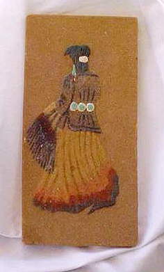 CLASSIC NATIVE AMERICAN artwork. This great sand painting is from Cuba, New Mexico near Farmington. This sand painting is 6" by 12" and is at least 30 years old. Beautiful, rare and unique!
