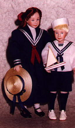 sailing. Nicholas has his sailor hat and sailboat and Nadia carries her straw